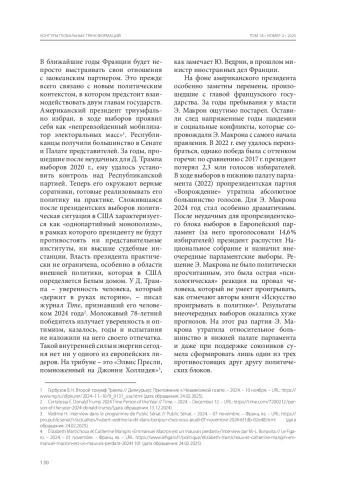 7. Преображенская А. Франция: в поисках социально-политического равновесия // Год планеты. - Вып. 23 : Экономика, политика, безопасность. - Москва : ИМЭМО РАН, 2024. - С. 207-219.