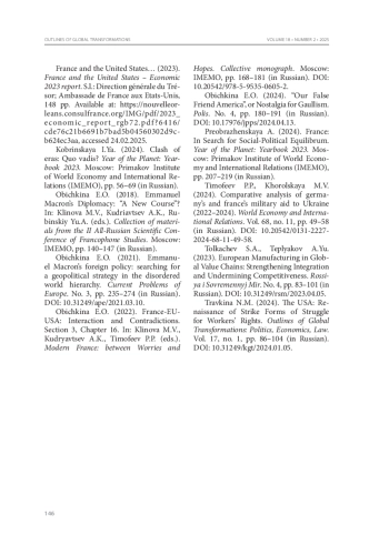 5. Обичкина Е.О. «Наш ложный друг Америка», или ностальгия по голлизму // Полис. - 2024. - № 4. - С. 180-191. - https://doi.org/10.17976/jpps/2024.04.13.