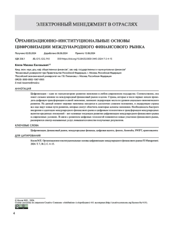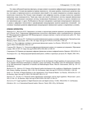 Цифровизация – один из «катализаторов» развития экономики в любом современном государстве. Соответственно, она имеет сильное влияние на международный финансовый рынок в целом. Страны, которые в числе первых начали проводить цифровую трансформацию в своей экономике, занимают лидирующие места по уровню социально-экономического развития. На данный момент мировая экономика находится в достаточно сложном положении, и лидирующие страны все еще ищут новые пути развития, которые смогут облегчить некоторые аспекты экономики. Необходимость быстрого внедрения и адаптации международного финансового рынка к цифровым технологиям и трансформация международных валютно-кредитных отношений – вот основные тенденции развития цифровизации международного финансового рынка в современных условиях. В связи с развитием цифровых технологий появляются новые участники финансового рынка, расширяется спектр оказываемых услуг, повышается качество получаемых результатов.