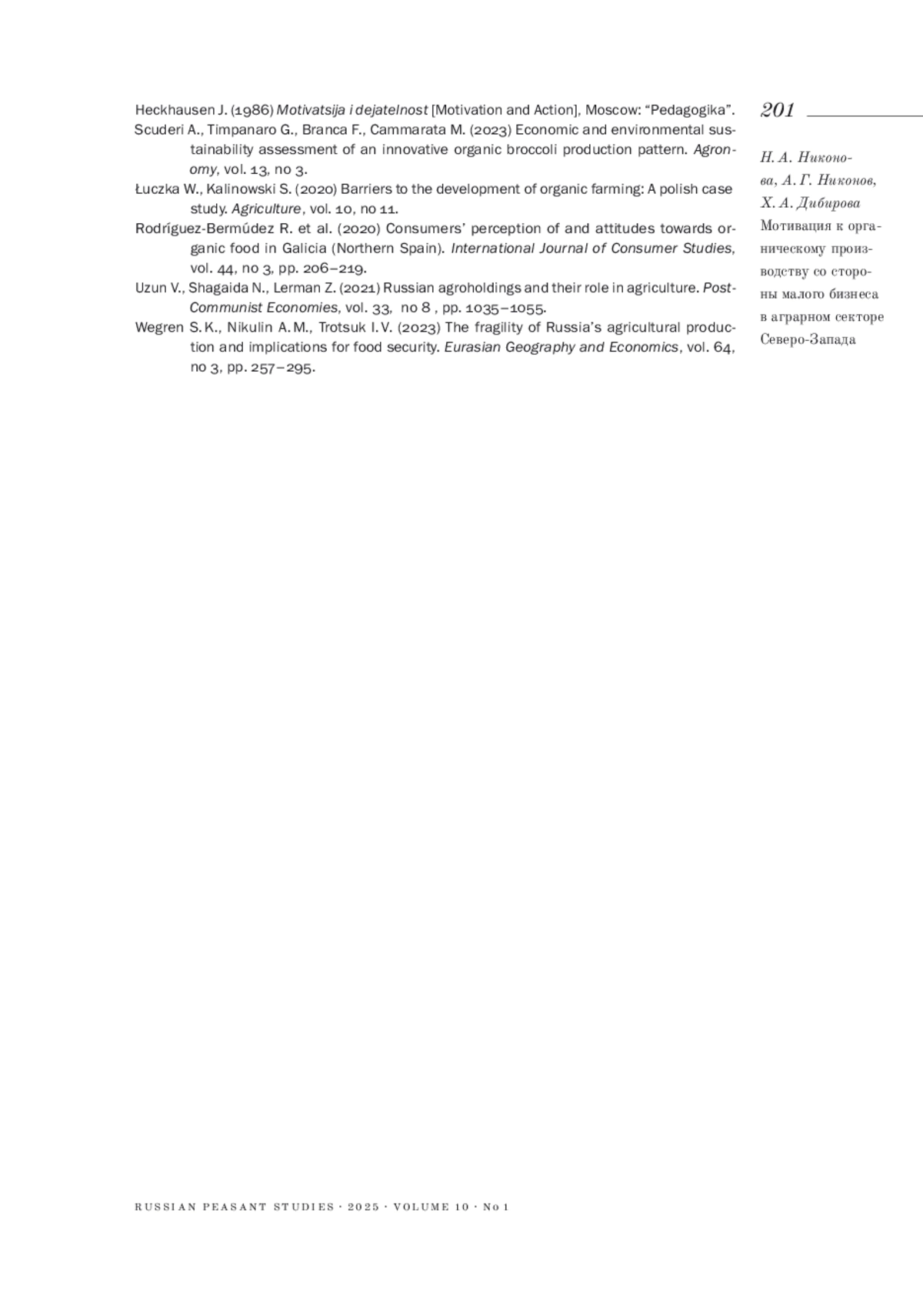 2. Виноградский В. Г., Виноградская О. Я., Никулина Е. С. (2020). Экология сельского мира как предмет социологического исследования // Крестьяноведение. Т. 5. № 1. С. 125-142. EDN: QOFVKM