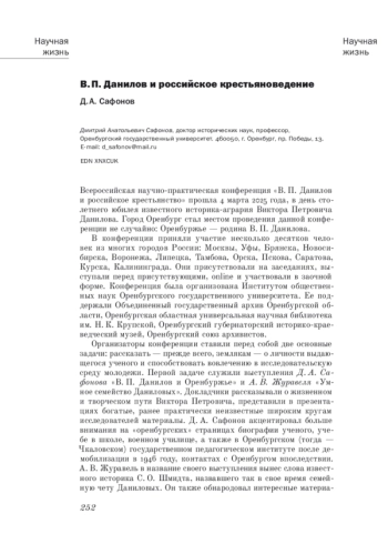Всероссийская научно-практическая конференция «В. П. Данилов и российское крестьянство» прошла 4 марта 2025 года, в день столетнего юбилея известного историка-агрария Виктора Петровича Данилова. Город Оренбург стал местом проведения данной конференции не случайно: Оренбуржье — родина В. П. Данилова.