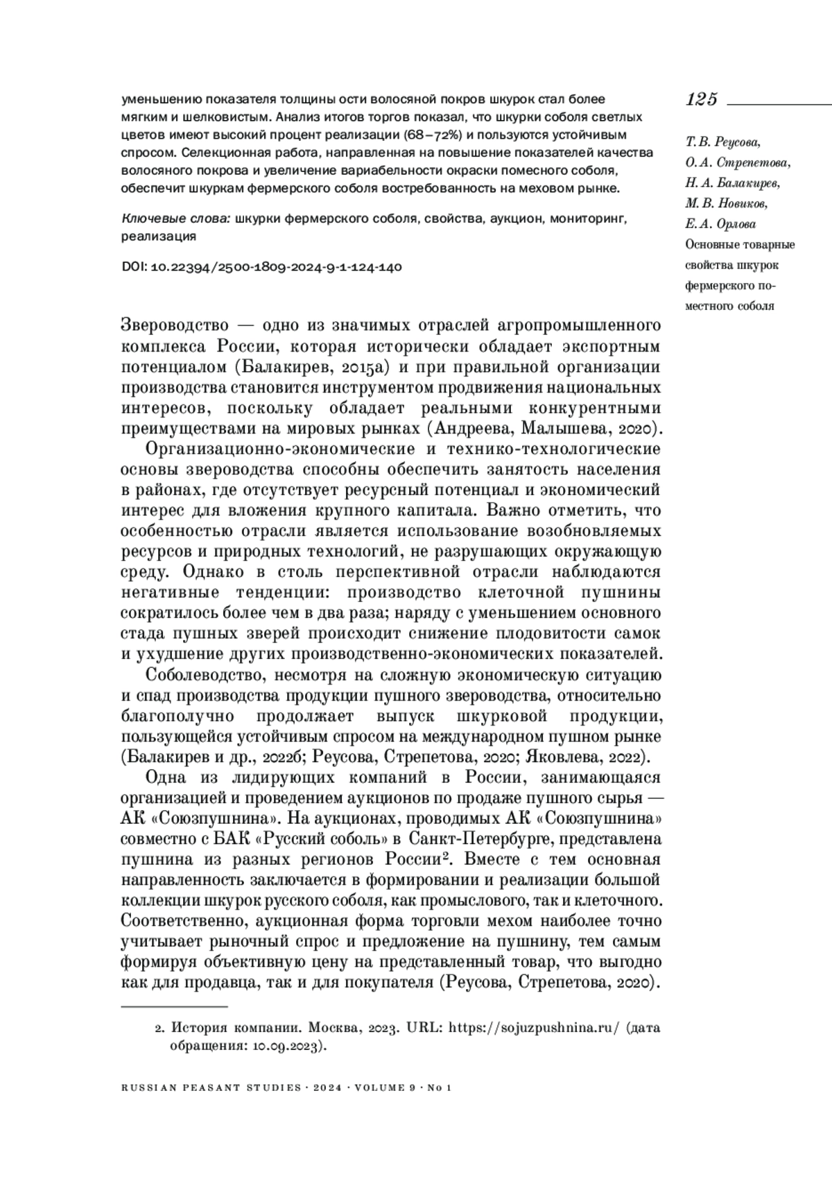 3. Балакирев Н. А., Новиков М. В., Реусова Т. В., Стрепетова О. А., Орлова Е. А., Баймуканов Д. А. (2022). Мониторинг современного состояния заготовки и реализации шкурок соболя в Российской Федерации // Доклады НАН РК. № 4. С. 5-17. EDN: FONUVU