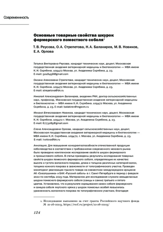 8. Реусова Т. В., Стрепетова О. А. (2020). Основные свойства шкурок соболя, формирующие качество, спрос и ценовую политику меховых товаров // Костюмология. Т. 5. № 4. С. 15. EDN: WOTJOY
