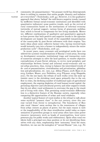 34. Nefedova T. G. (2021) Polarization of the social-economic space and prospects of rural areas in the old-developed regions of Central Russia. Russian Peasant Studies, vol. 6, no 1. (In Russian). EDN: DNGPIA