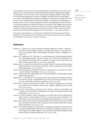 14. Логинов Д. М. (2020б). Социальное самочувствие российского населения в период острой фазы эпидемиологического кризиса // Мониторинг общественного мнения: экономические и социальные перемены. № 6(160). С. 470-487. EDN: SZRTVA