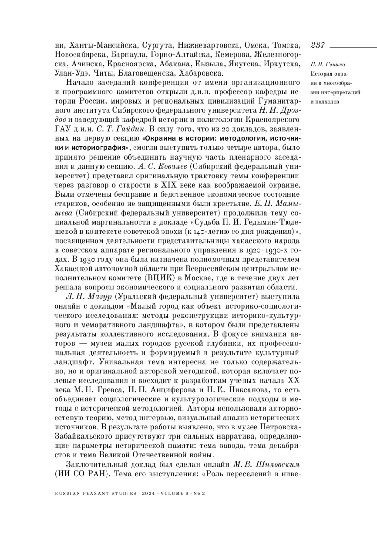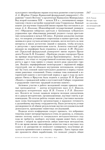 «Окраины воображаемые и реальные» — так называлась международная конференция, состоявшаяся в Красноярске 29‒30 ноября 2023 года. Она проходила в рамках ежегодных чтений, посвященных памяти заслуженного деятеля науки В. В. Гришаева, организованных кафедрой истории и политологии Красноярского государственного аграрного университета при поддержке Института истории СО РАН, Сибирского федерального университета, Государственного архива Красноярского края, Государственной универсальной научной библиотеки Красноярского края и Красноярского краевого краеведческого музея
