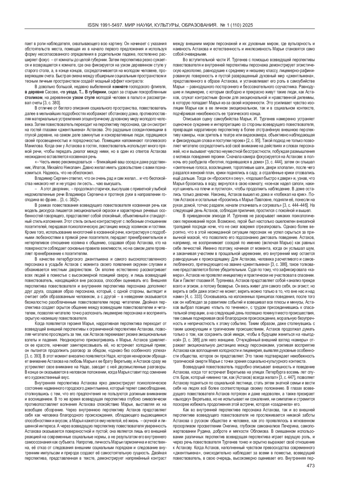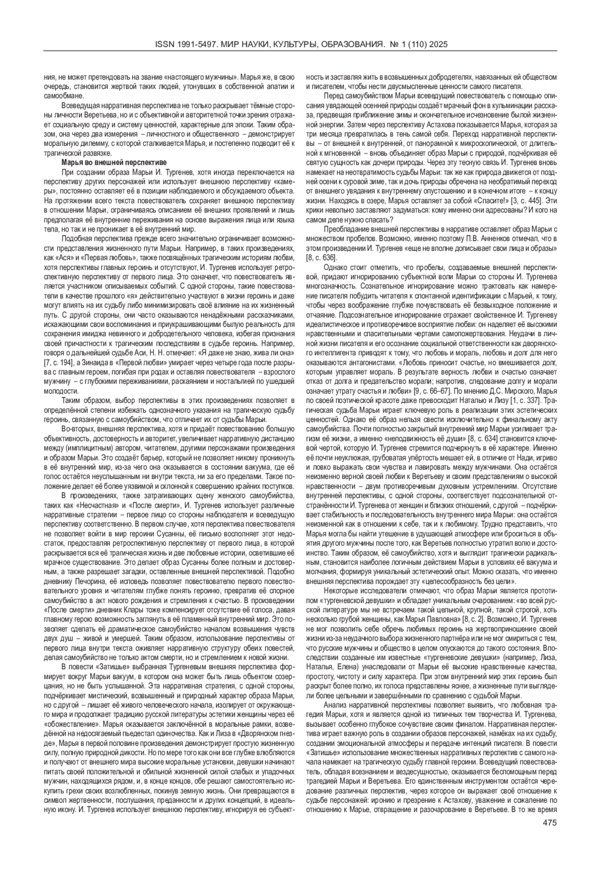 ОУЯН Ю. СУДЬБА В НАРРАТИВНОЙ ПЕРСПЕКТИВЕ (НА МАТЕРИАЛЕ ПОВЕСТИ И. ТУРГЕНЕВА «ЗАТИШЬЕ») // МИР НАУКИ, КУЛЬТУРЫ, ОБРАЗОВАНИЯ. 2025. № 1 (110)