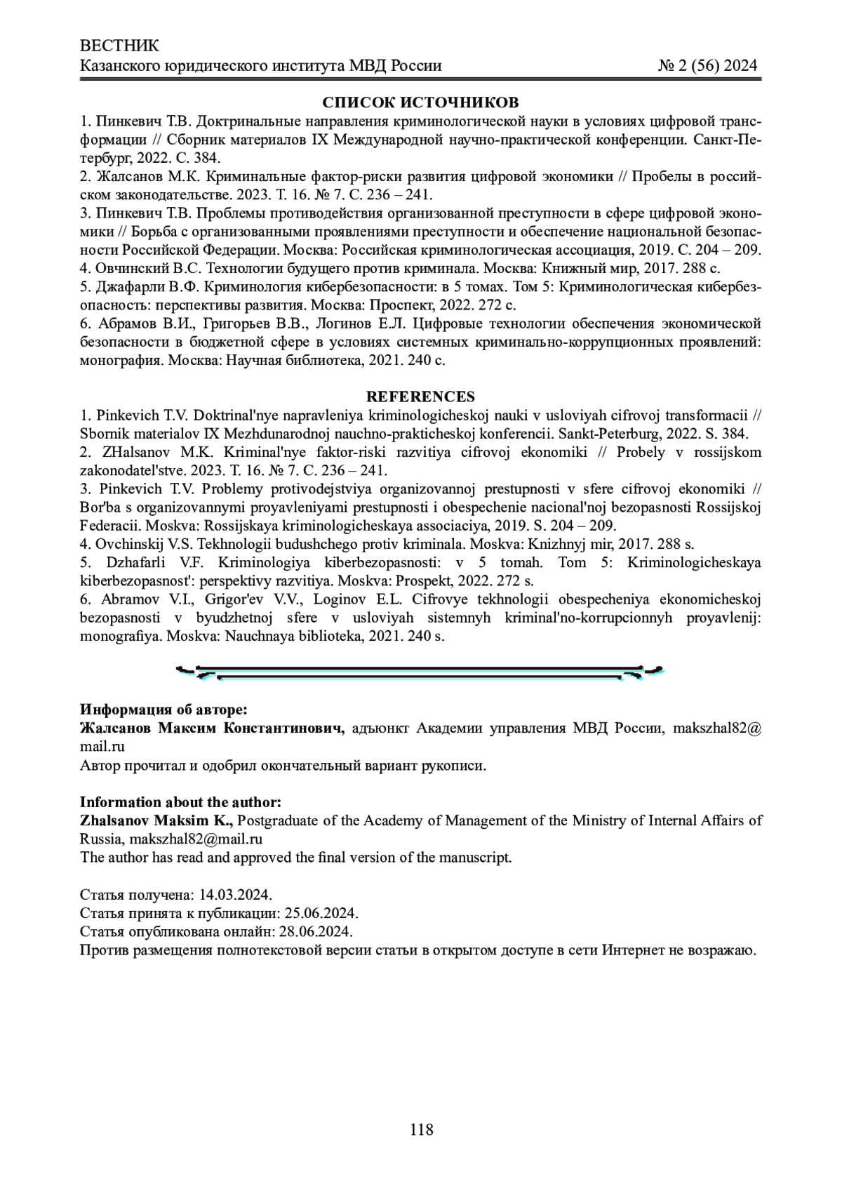 Ключевые фразы: экономическая безопасность, цифровизация, цифровые экономические преступления, инновационные подходы