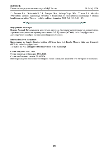 13. Тросман Э.А., Бежанишвили Г.С., Батыгина Н.А., Архангельская Н.М., Юрова Р.А. Методика “Определение давности выполнения реквизитов в документах по относительному содержанию в штрихах летучих растворителей” // Теория и практика судебной экспертизы. 2013. № 2 (30). С. 81 - 87. EDN: QYQQIT