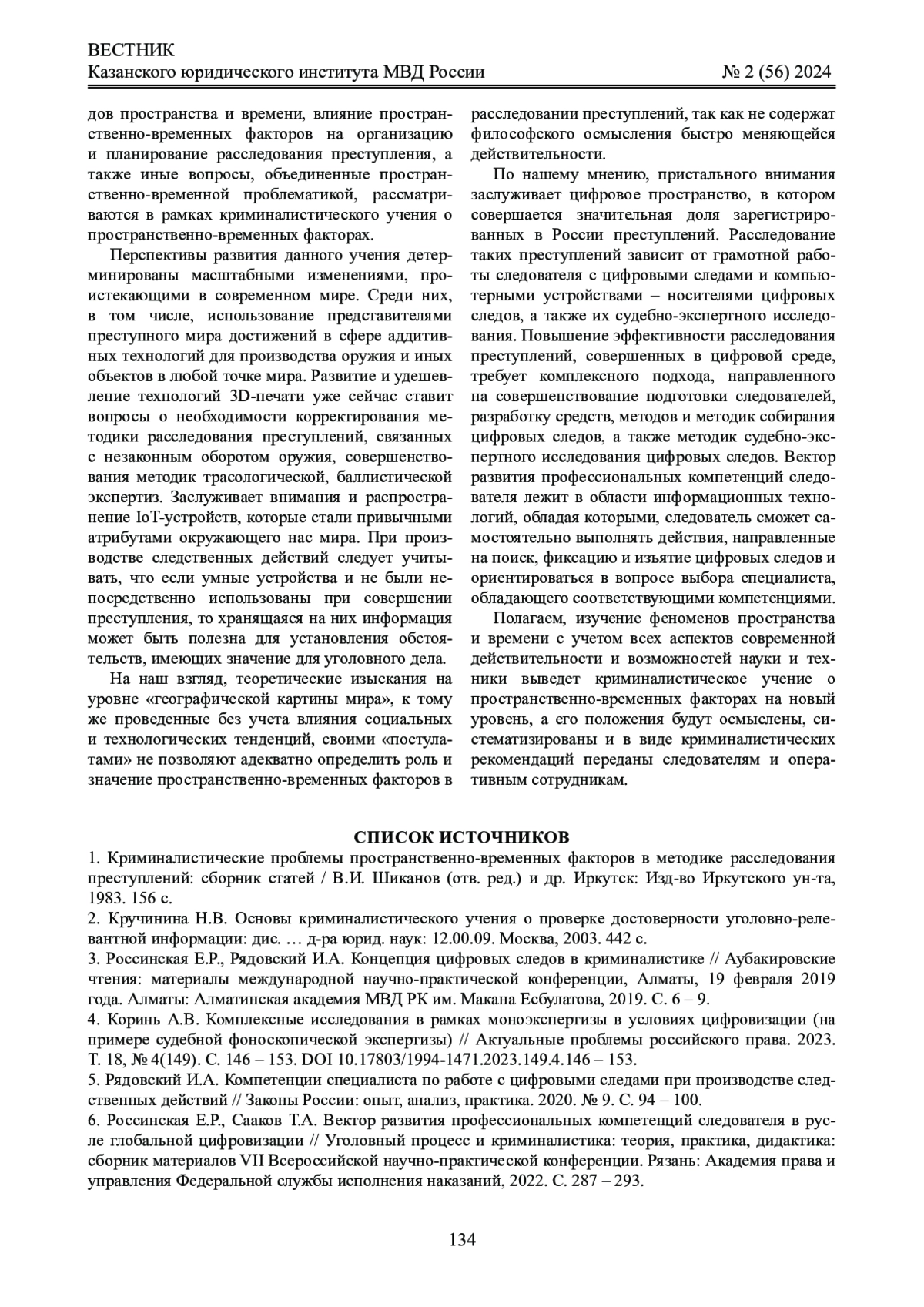 6. Россинская Е.Р., Сааков Т.А. Вектор развития профессиональных компетенций следователя в русле глобальной цифровизации // Уголовный процесс и криминалистика: теория, практика, дидактика: сборник материалов VII Всероссийской научно-практической конференции. Рязань: Академия права и управления Федеральной службы исполнения наказаний, 2022. С. 287 - 293. EDN: ZGHLMM