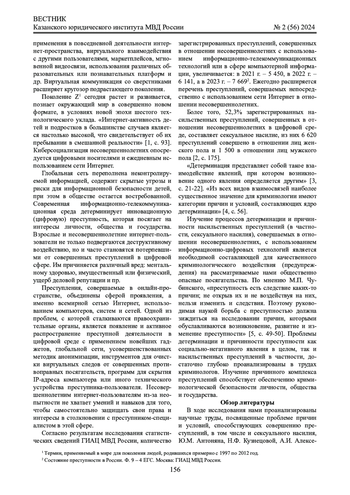 Обзор литературы: при подготовке статьи были проанализированы научные труды Ю. М. Антоняна, Н. Ф. Кузнецовой, А. И. Алексеева, В. Н. Кудрявцева, В. Е. Эминова, А. Б. Сахарова и др.; исследованы современные научные издания, диссертационные исследования и научные статьи Т. В. Пинкевич, В. А. Туркулец, А. В. Кулакова, А. С. Медведевой, Н. Л. Антипиной, М. Н. Туруновой, О. В. Сафроновой, Г. У. Солдатовой, Е. И. Рассказовой и др.