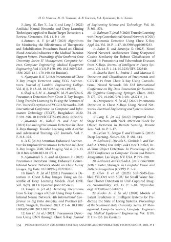 11. Haque A. Detecting Pneumonia from X-Ray Images of Chest Using Deep Convolutional Neural Network / A. Haque [et al.] // 24th International Conference on Big Data Analytics and Practices (IBDAP). - Bangkok, Thailand, 2023. - P. 1-6. DOI: 10.1109/IBDAP58581.2023.10271996
