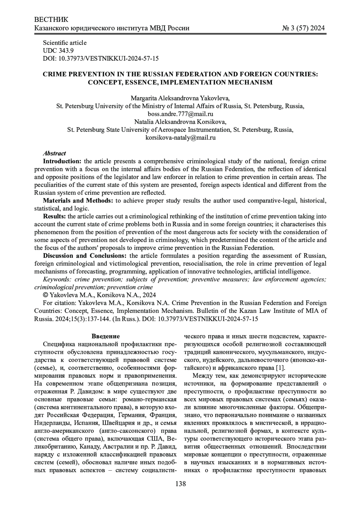 11. Шалагин А.Е., Идиятуллов А.Д. Зарубежный опыт предупреждения преступности в XXI веке // Вестник Казанского юридического института МВД России. 2020. № 2 (40). С. 219-225. EDN: KWRFMW