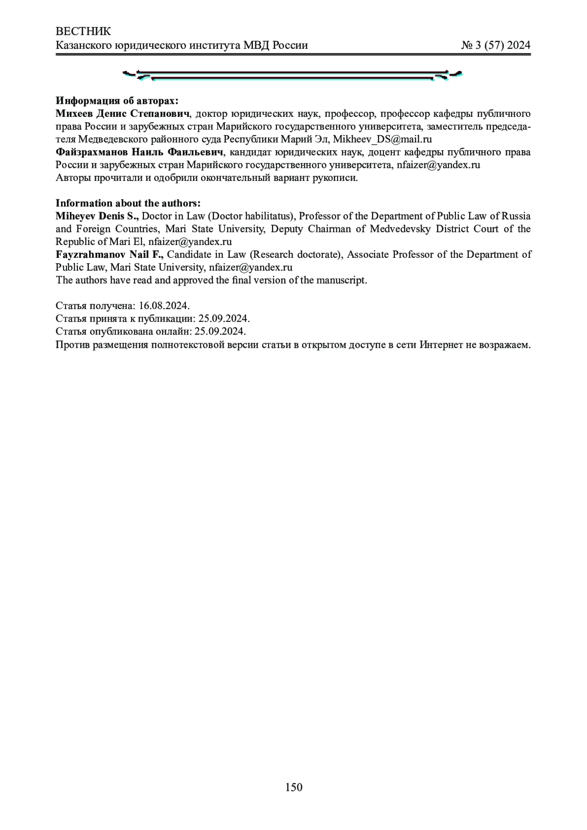 Материалы и методы: всеобщий диалектический метод познания явился методологической основой статьи. Также авторами применены общенаучные и частнонаучные методы познания: статистический, историко-правовой метод, системно-структурный анализ, аналогия, обобщение, сравнение, дифференциация, наблюдение, аналитическое обследование и иные методы исследования.