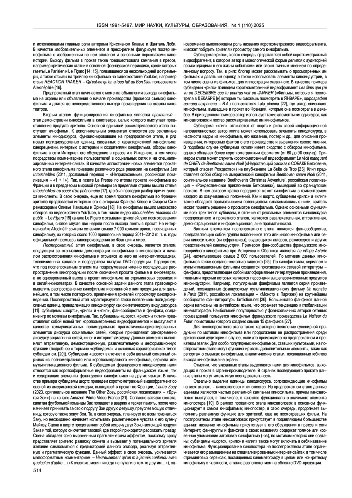 11. Анисимов В.Е. Внешняя иерархия французского кинодискурса. Дискурс профессиональной коммуникации. 2024; № 6 (4): 34-64. DOI: 10.24833/2687-0126-2024-6-4-34-64 EDN: BMPNXA