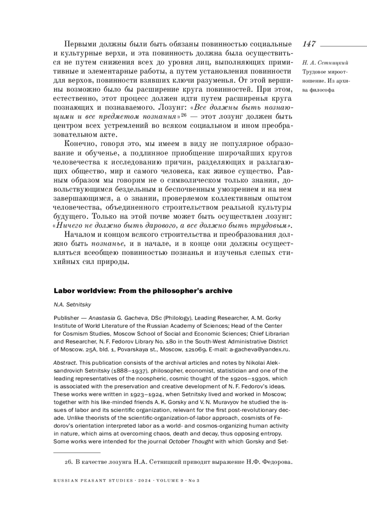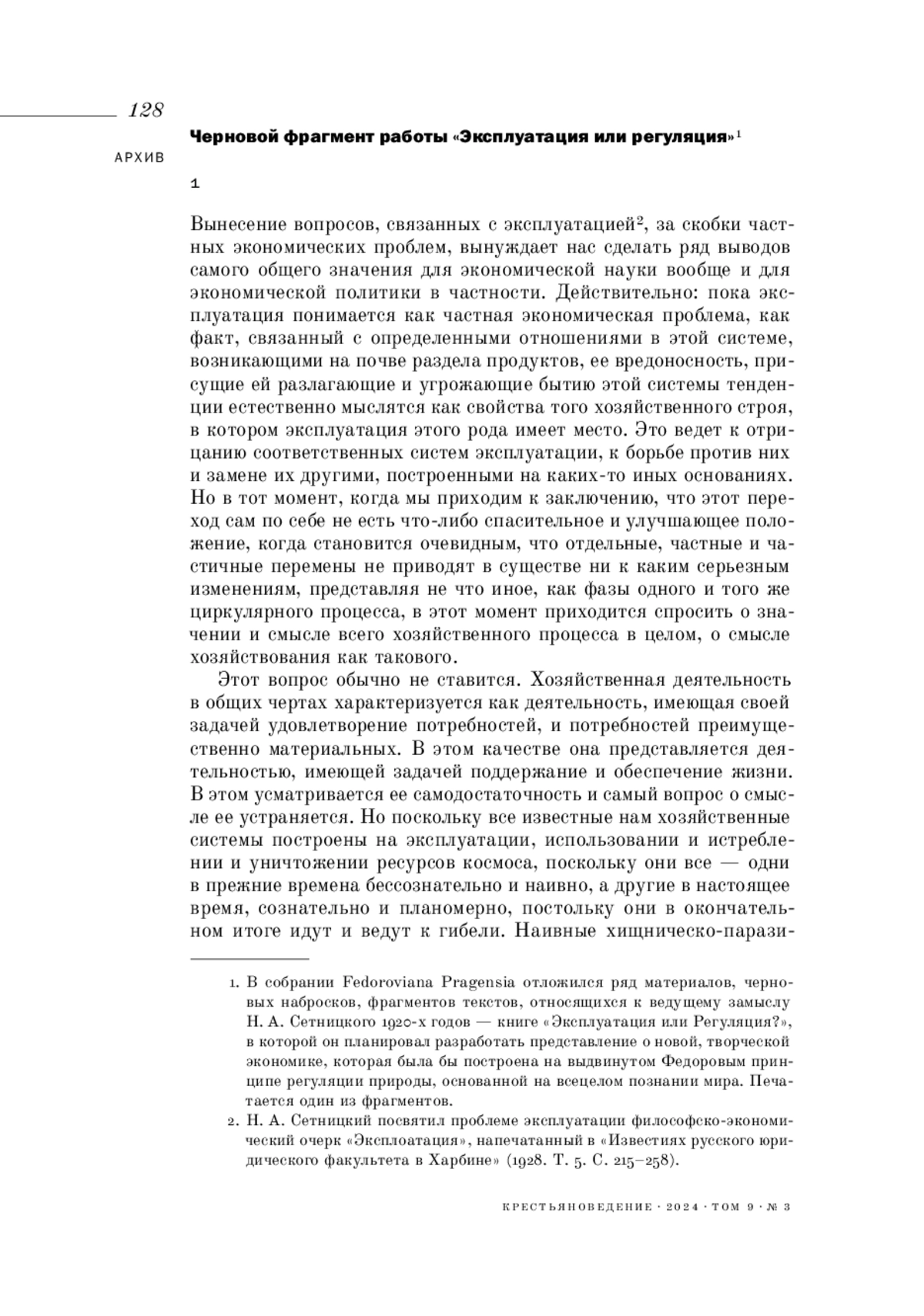 СЕТНИЦКИЙ Н. А. ТРУДОВОЕ МИРООТНОШЕНИЕ. ИЗ АРХИВА ФИЛОСОФА // КРЕСТЬЯНОВЕДЕНИЕ. 2024. Т. 9 № 3