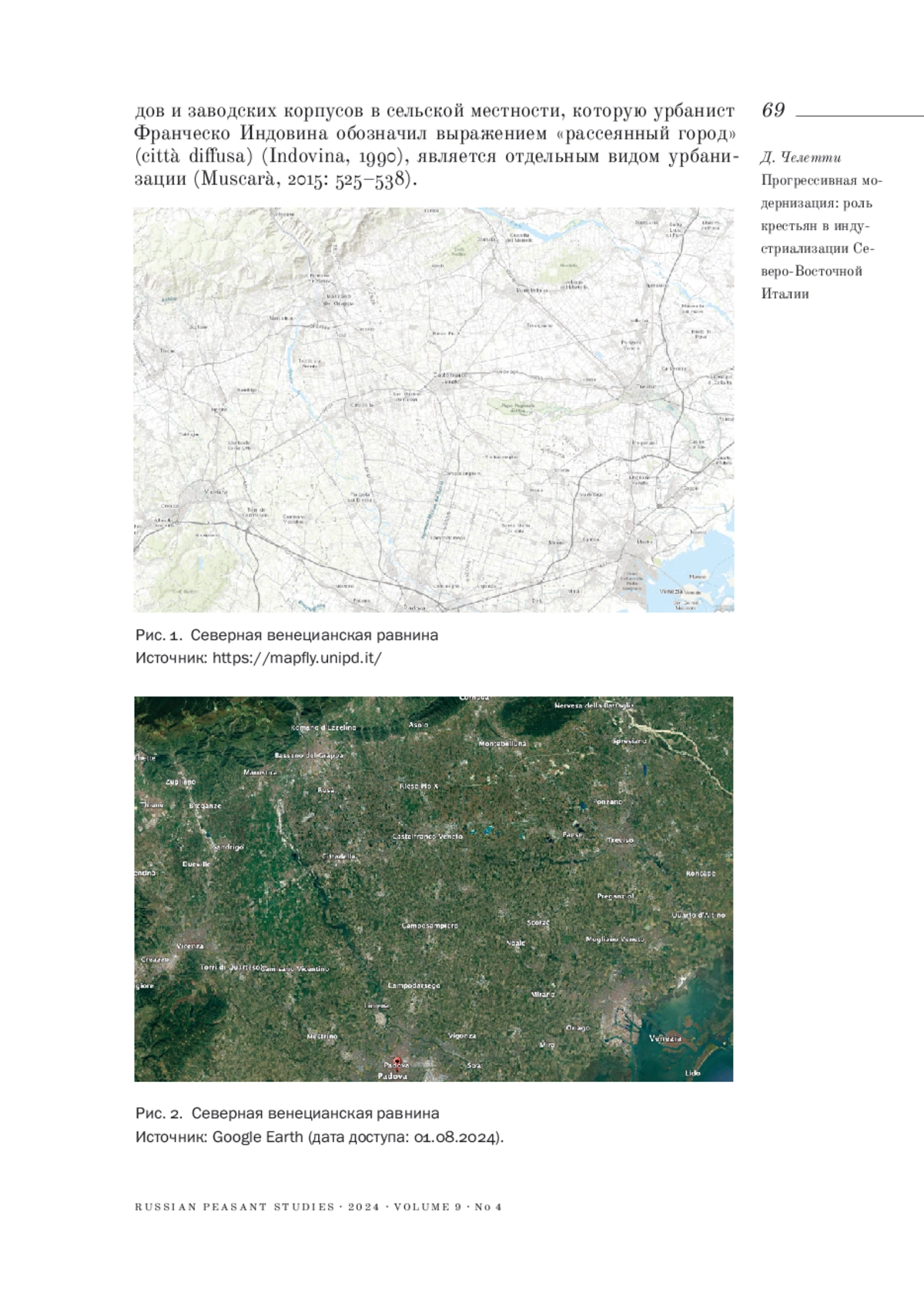 Процесс индустриализации Северо-Восточной Италии и, в частности, Северной Венецианской равнины шел вне городских центров, на аграрных территориях, для которых исторически было характерно землепользование, основанное на гармоничном сосуществовании различных культур в рамках отдельных мелких землевладений. Данная статья посвящена ключевым сдвигам, провоцирующим широкое распространение индустриальной деятельности на сельской территории и активное участие сельского населения в промышленном производстве. Материал статьи организован следующим образом: в первом разделе анализируется научная литература о путях региональной модернизации; во втором разделе представлены основные черты традиционного сельского хозяйства Северо-Восточной Венецианской равнины; в третьем рассматриваются изменения в отраслевой структуре местной экономики в период индустриализации. В заключении подводятся итоги и описываются текущие преобразования в местной экономике, обществе и ландшафте.