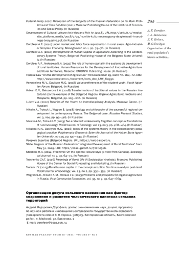 19. Nikulin A. M., Trotsuk I. V. (2023) Two and a half undeservedly forgotten conceptual foundations of rural sociology.RUDN Journal of Sociology, vol. 23, no 3, pp. 468-484. (In Russian). EDN: WWNFKX