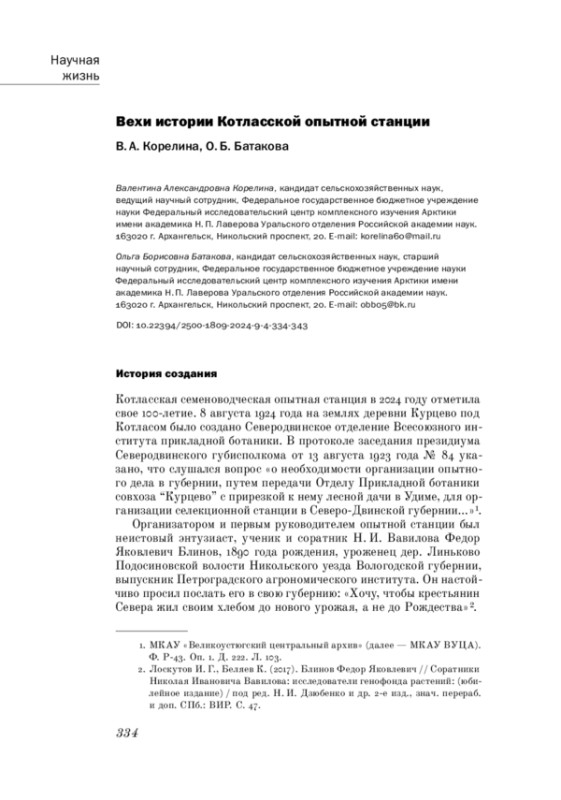 Котласская семеноводческая опытная станция в 2024 году отметила свое 100-летие. 8 августа 1924 года на землях деревни Курцево под Котласом было создано Северодвинское отделение Всесоюзного института прикладной ботаники. В протоколе заседания президиума Северодвинского губисполкома от 13 августа 1923 года No 84 указано, что слушался вопрос «о необходимости организации опытного дела в губернии, путем передачи Отделу Прикладной ботаники совхоза “Курцево” с прирезкой к нему лесной дачи в Удиме, для организации селекционной станции в Северо-Двинской губернии…»