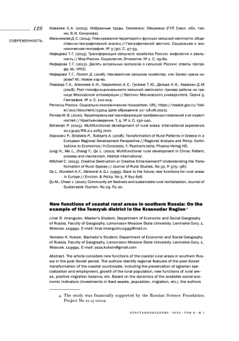5. Алексеев А. И., Корюхин Д. А. (2017). “Инверсия” сельской урбанизации? // Вестник Московского ун-та. Серия 5. География. № 5. С. 103-105. EDN: ZRFAKH