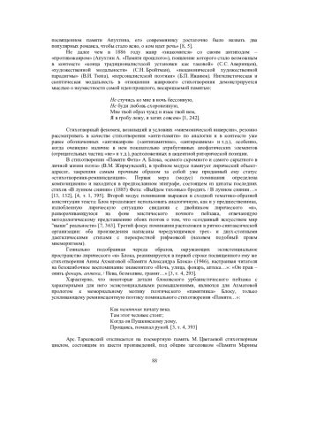 Стихотворение «Памяти…» неоднократно становилось предметом изучения в трудах современных исследователей. Так, Д. Н. Ахапкин весь комплекс лирических текстов с типическими номинативами «Памяти…» и «На смерть…» сводит в отдельную группу «стихотворений in memoriam, которые имеют сходную тематику и структуру и могут быть описаны как отдельное жанровое образование» [2, 123].