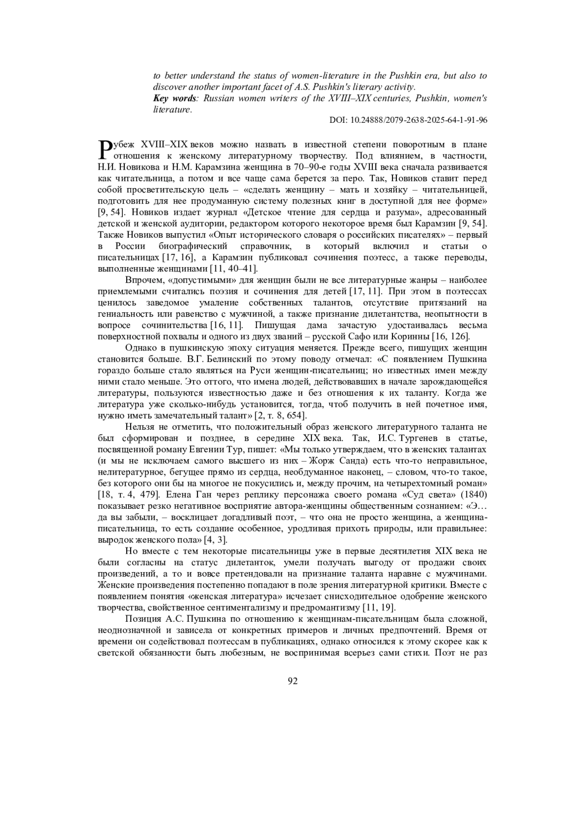 Статья: А. С. ПУШКИН И ПИСАТЕЛЬНИЦЫ-СОВРЕМЕННИЦЫ: ВЛИЯНИЕ И КРИТИЧЕСКАЯ РЕЦЕПЦИЯ (2025)