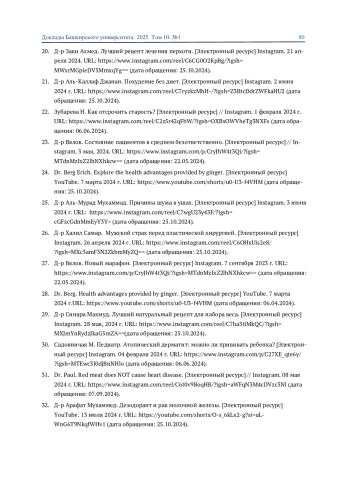 29. Д-р Синара Махмуд. Лучший натуральный рецепт для набора веса. [Электронный ресурс] Instagram. 28 мая, 2024 г. URL: https://www.instagram.com/reel/C7ha3tiMkQC/?igsh= MXJmYnRydzJkaG5mZA==(дата обращения: 25.10.2024).