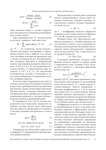 Ключевые фразы: оптимизация, частицы-агенты, ЦЕЛЕВАЯ ФУНКЦИЯ, алгоритм, гравитационный поиск, вязкость, эволюционное программирование