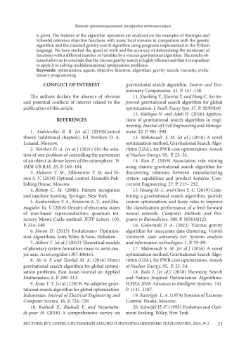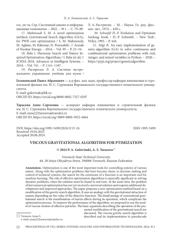 ТАРАСОВА А. С., ГОЛОВИНСКИЙ П. А. ВЯЗКИЙ ГРАВИТАЦИОННЫЙ АЛГОРИТМ ОПТИМИЗАЦИИ // ВЕСТНИК ВОРОНЕЖСКОГО ГОСУДАРСТВЕННОГО УНИВЕРСИТЕТА. СЕРИЯ: СИСТЕМНЫЙ АНАЛИЗ И ИНФОРМАЦИОННЫЕ ТЕХНОЛОГИИ. 2024. № 2