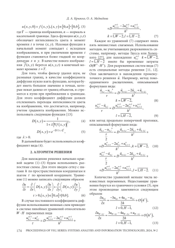 4. Борисенко Г. В. Об одном диффузионном методе фильтрации и повышения резкости изображений / Г. В. Борисенко, А. М. Денисов, А. С. Крылов // Программирование. - 2008. -С. 32-36. EDN: LMBVBD