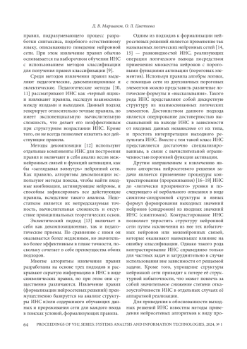 21. Marshakov D. V.Rule extraction from the Artificial Neural Network / D. V. Marshakov // IOP Conference Series: Materials Science and Engineering: 16 (Rostov-on-Don, 11-13 September 2020). - Rostov-on-Don, 2021. - P. 012127. -. DOI: 10.1088/1757-899X/1029/1/012127 EDN: GYCHOV