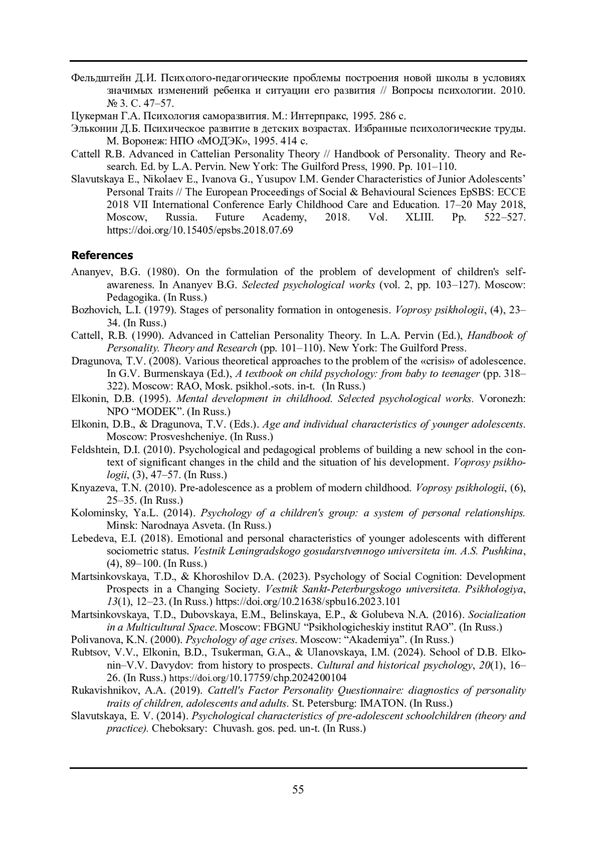 Статья: РЕПРЕЗЕНТАЦИЯ ЛИЧНОСТНЫХ ЧЕРТ В СОЦИОМЕТРИЧЕСКОМ СТАТУСЕ ПОДРОСТКОВ РАЗНЫХ ВОЗРАСТНЫХ ГРУПП (2025)