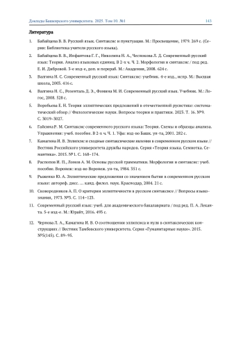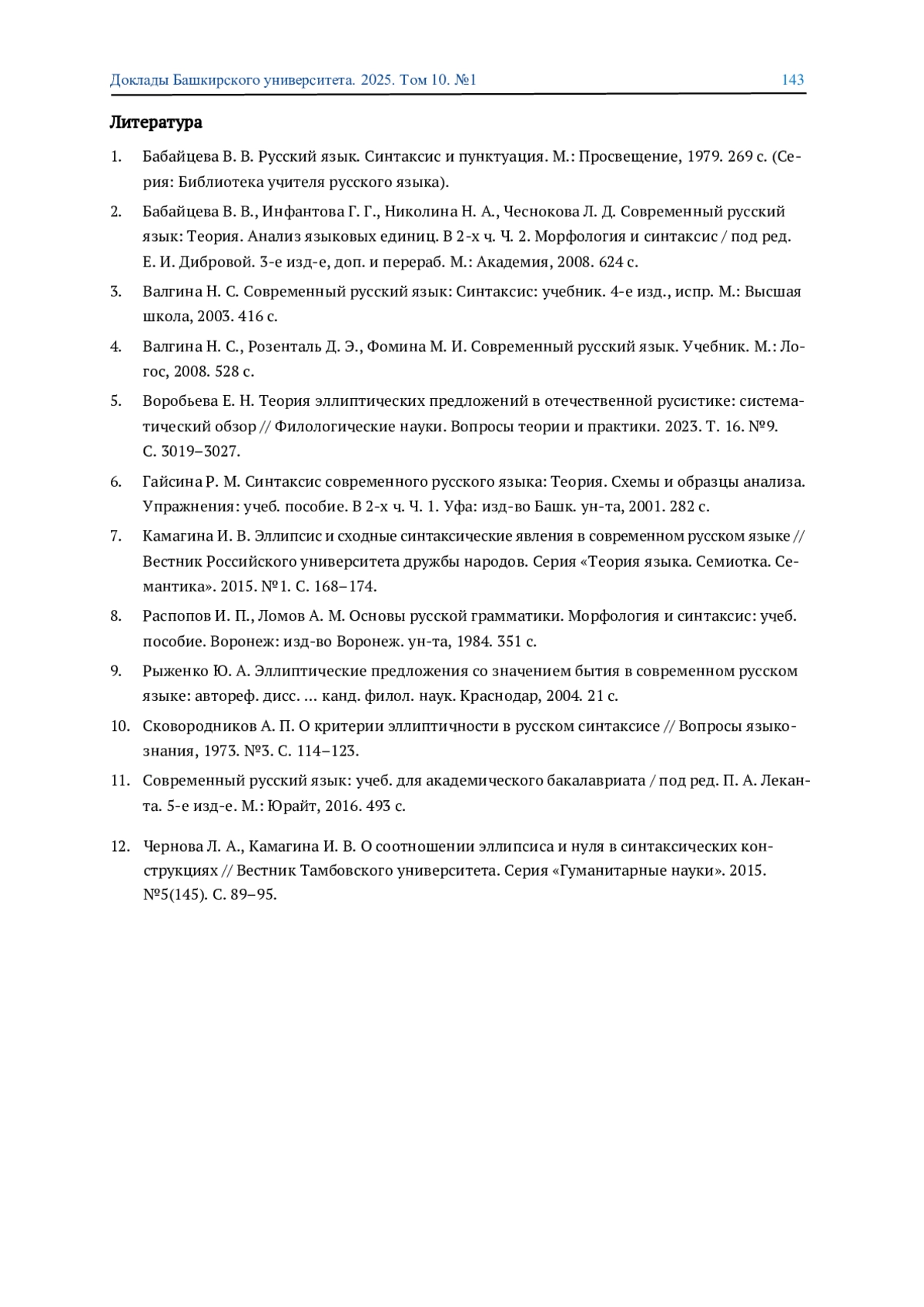 5. Воробьева Е. Н. Теория эллиптических предложений в отечественной русистике: систематический обзор // Филологические науки. Вопросы теории и практики. 2023. Т. 16. №9. С. 3019-3027. EDN: EPVDJS