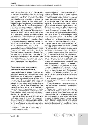 Статья: Теоретические основы снятия исполнительского иммунитета с единственно пригодного жилья должника (2025)