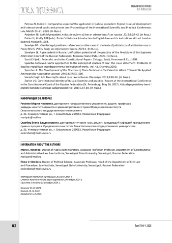 5. Поляков С. Б. Судебный прецедент в России: форма права или произвола? // Lex russica. 2015. № 3. С. 28-42.