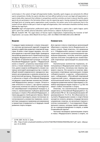 6. Мерзликина Р. А., Бычков А. Б. Физкультурно-спортивные организации в гражданско-правовых отношениях: проблемы теории и практики // Гуманитарные и социальные исследования. 2014. № 2. С. 112-116.