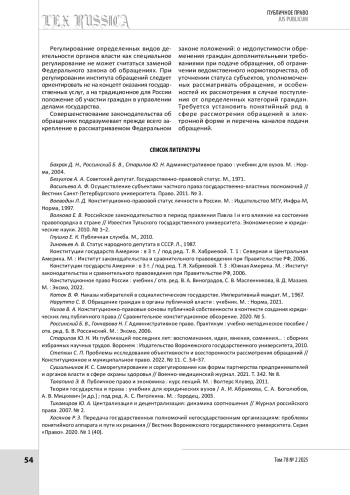 16. Степкин С. П. Проблемы исследования объективности и всесторонности рассмотрения обращений // Конституционное и муниципальное право. 2022. № 11. С. 34-37.