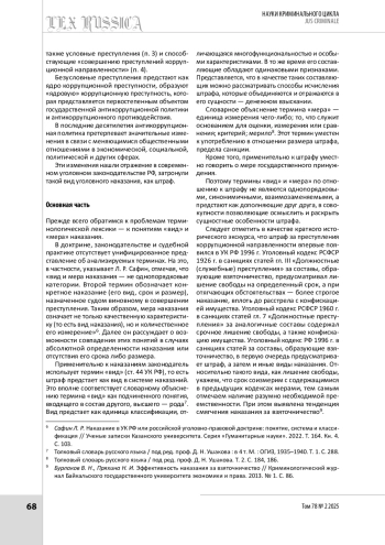 10. Сафин Л. Р. Наказание в УК РФ и российской уголовно-правовой доктрине: понятие, система и классификация // Ученые записки Казанского университета. Серия «Гуманитарные науки». 2022. Т. 164. Кн. 4. С. 99-112.