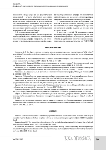 7. Лобанова Л. В., Погосян А. Р. Проблемы обеспечения уплаты штрафа, назначенного за преступления, предусмотренные ст. 290-291.1 УК РФ // Уголовное право. 2015. № 4. С. 38-45.