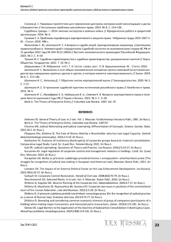 10. Слонов Д. С. Правовые препятствия для применения доктрины материальной консолидации в делах о банкротстве // Актуальные проблемы российского права. 2024. № 8. С. 114-126.