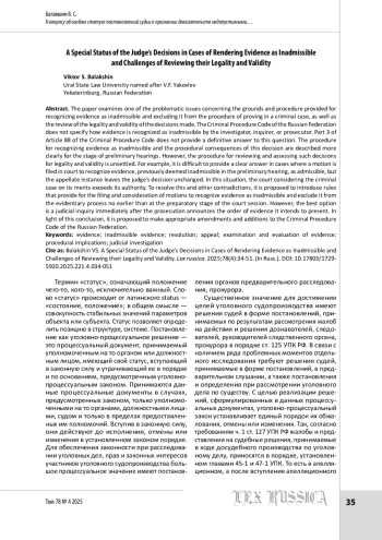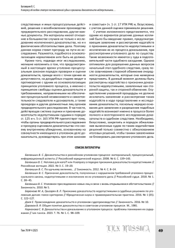 2. Балакшин В. С. Неплохо для кого?! или К вопросу о порядке признания доказательств недопустимыми // Российская юстиция. 2022. № 3. С. 19-20.