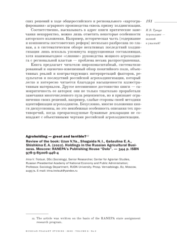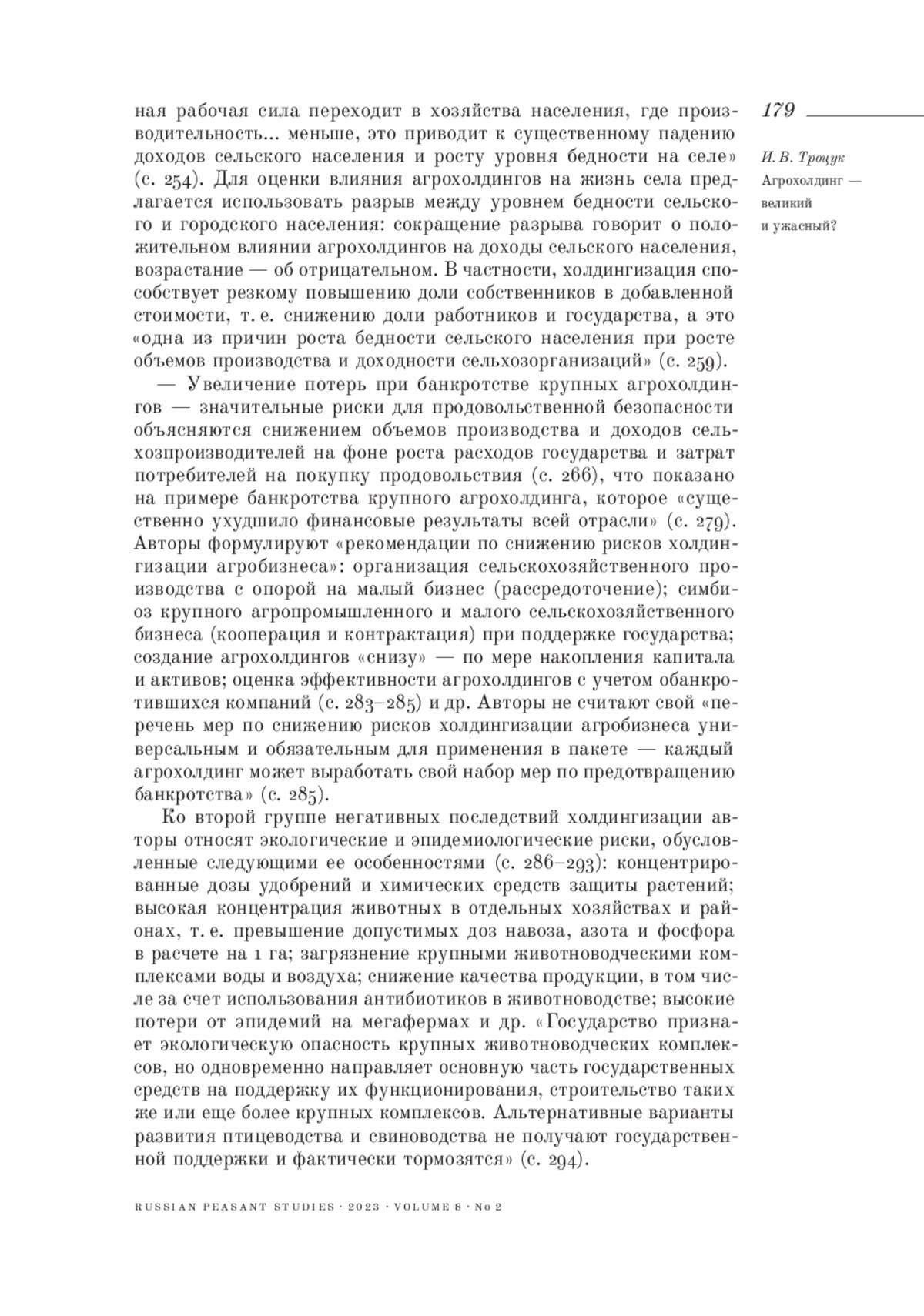 ТРОЦУК И. В. АГРОХОЛДИНГ - ВЕЛИКИЙ И УЖАСНЫЙ? // КРЕСТЬЯНОВЕДЕНИЕ. 2023. Т. 8 № 2