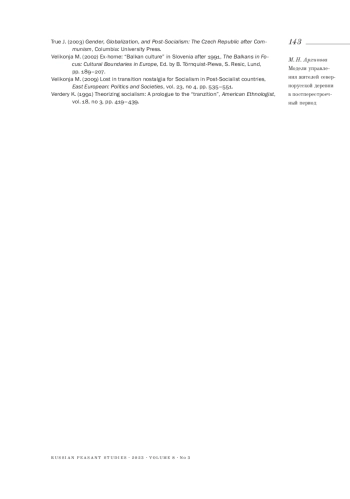 15. Velikonja M. (2009). Lost in transition: Nostalgia for socialism in post-socialist countries // East European: Politics and Societies. Vol. 23. № 4. P. 535-551.