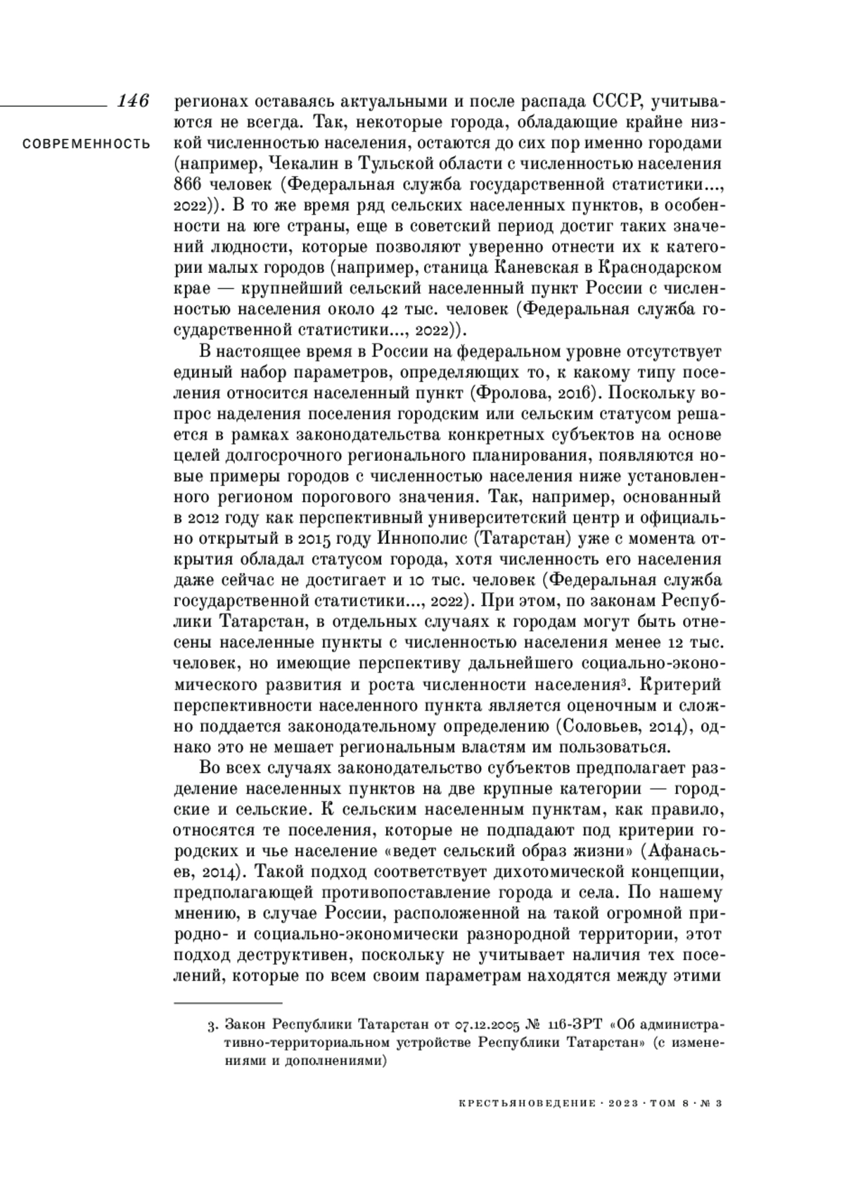 3. Афанасьев А. А. (2014). Понятие и формально-юридические признаки сельских поселений: территория, население, правовой режим // Пробелы в российском законодательстве. Юридический журнал. №. 3. С. 298-303. EDN: SGYTGL
