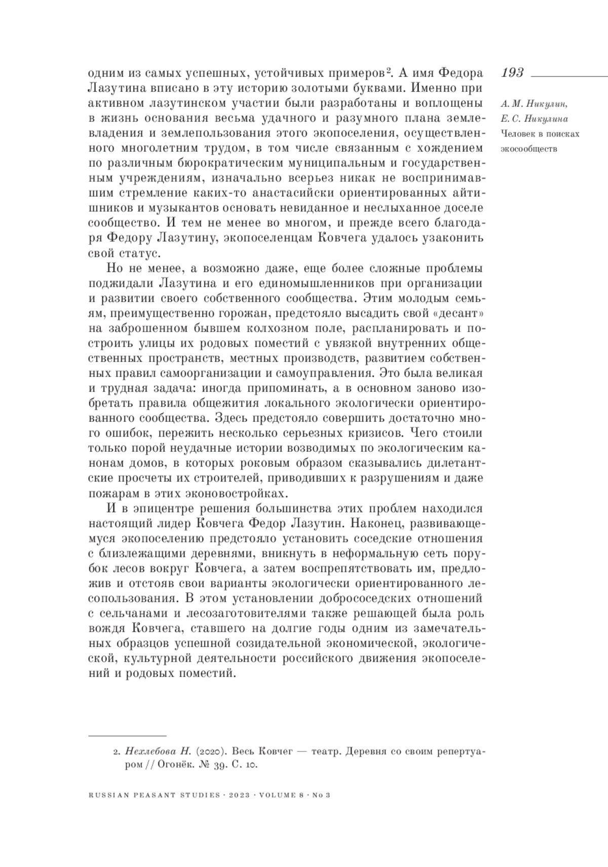 1. Нехлебова Н. (2020). Весь Ковчег - театр. Деревня со своим репертуаром // Огонёк. № 39. С. 10.