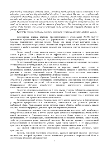 3. Овчинникова, М. В. Особенности преподавания химии в системе среднего профессионального образования / М. В. Овчинникова // Состояние, направления и перспективы развития среднего профессионального образования: сборник материалов Международной заочной научно-практической конференции, Чебоксары, 25 марта 2016 года / Ответственный за выпуск Г.Г. Волков. - Чебоксары: Чебоксарский кооперативный институт (филиал) автономной некоммерческой образовательной организации высшего образования Центросоюза Российской Федерации “Российский университет кооперации”, 2016. - С. 116-120.