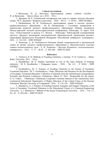 1. Васильева, П. Д. Методика преподавания химии: учебное пособие / П. Д. Васильева. - Элиста: Калм. ун-т, 2012. - 102 с. EDN: UHDKHH