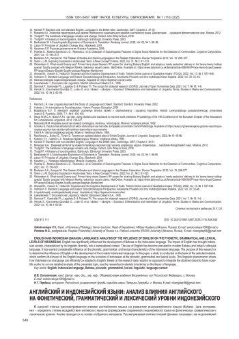 Статья: АНГЛИЙСКИЙ И ИНДОНЕЗИЙСКИЙ ЯЗЫКИ: АНАЛИЗ ВЛИЯНИЯ АНГЛИЙСКОГО НА ФОНЕТИЧЕСКИЙ, ГРАММАТИЧЕСКИЙ И ЛЕКСИЧЕСКИЙ УРОВНИ ИНДОНЕЗИЙСКОГО (2025)
