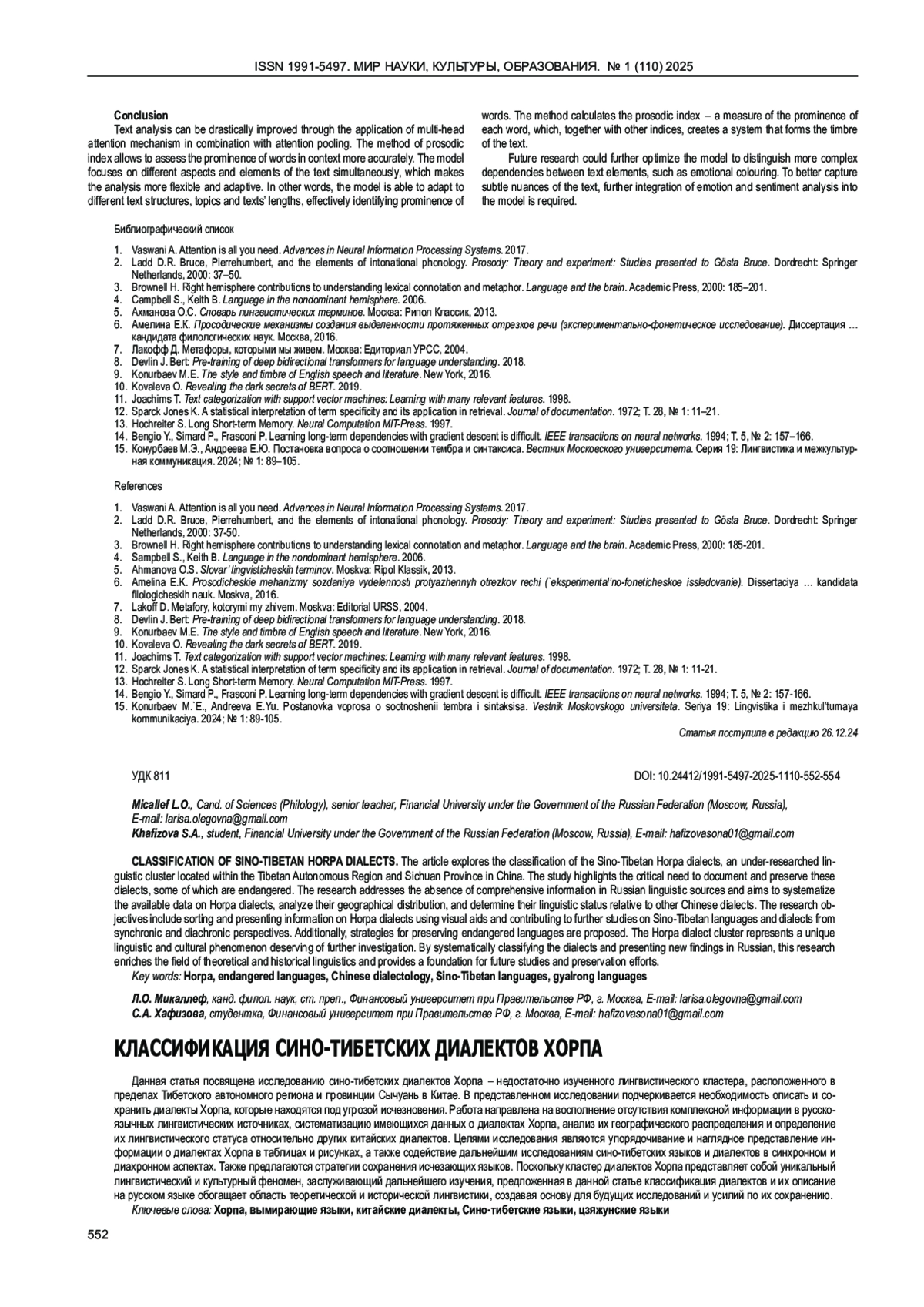 15. Конурбаев М.Э., Андреева Е.Ю. Постановка вопроса о соотношении тембра и синтаксиса. Вестник Московского университета. Серия 19: Лингвистика и межкультурная коммуникация. 2024; № 1: 89-105. EDN: MKIGSN