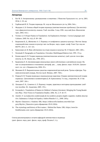 4. Vermes A. P. Proper Names in Translation: An Explanatory Attempt // Across Languages and Cultures. 2003. No. 4(1). P. 89-108.